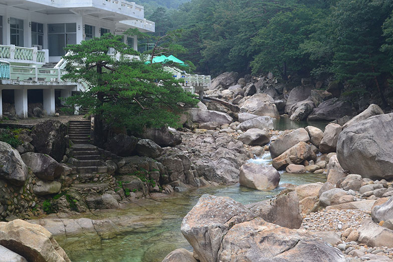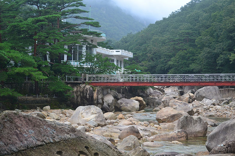 Arriving in the sea port on the east coast of Wonsan we ate at a seafood restaurant. Later we drove two hours to the 5-star Kumgangsan hotel. Along the way we visited the Sokwang temple, located in a heavily forested area and flanked on all sides by a grove of picturesque alpine trees.