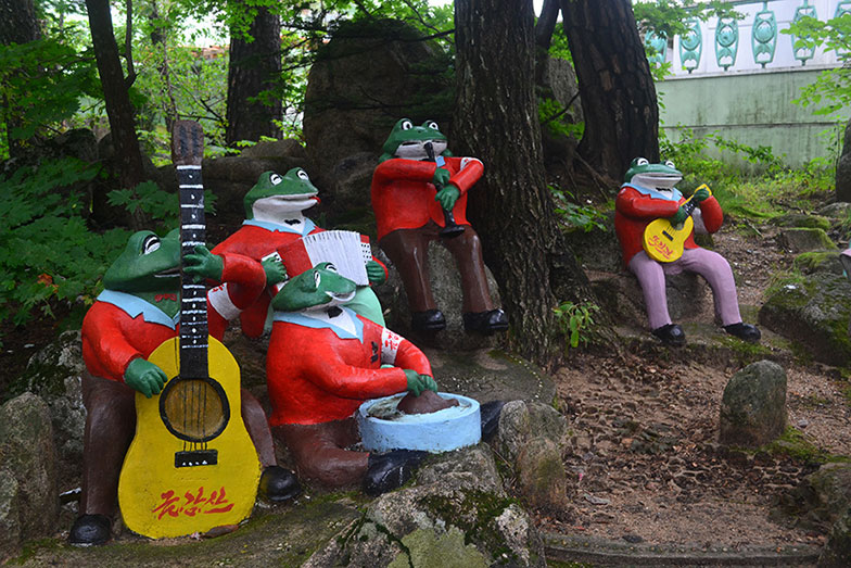 Next we visited an ancient Buddhist temple at Songbul. The lone priest on-site was very friendly. The complex around Songbul temple is a site frequently used to shoot North Korean films. They were recording a new film at the time of our visit.