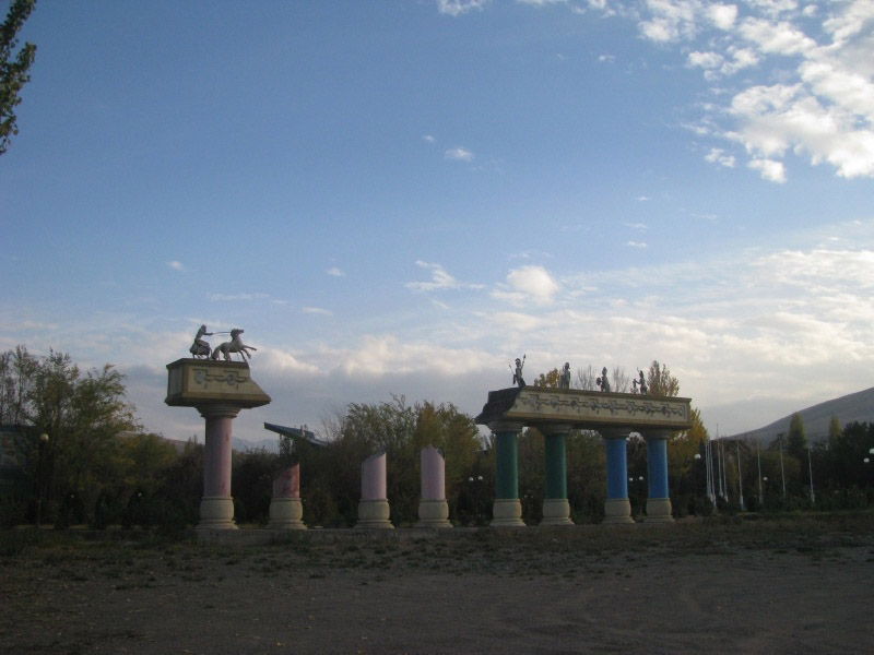 Before leaving Almaty, we drove into the Small Almaty Gorge, snaking upward to approximately 5,000 feet, where the Medeo Sports Complex is located. Set among the craggy peaks and alpine slopes created by an ancient glacier, this Olympic-size skating rink has seen many world records set and will be the site of the next Asian Games. Close to the complex, we had lunch in a traditional Kazakh yurt restaurant before setting off to Bishkek, the capital of Kyrgystan.