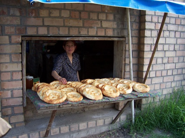 The following day, we flew to Osh, located in the south of Kyrgyzstan. It is the country’s oldest and second-largest city, set in the fertile Fergana Valley. We were the first MIR group to visit Osh since ethnic rioting in the spring destroyed many Uzbek neighborhoods. It was a center of silk production along the old Silk Road and celebrated its 3,000th anniversary in 2000. There we visited the sacred throne of Suleiman the Magnificent, a huge limestone and quartz mound with a view of the city. It is full of caves, some of which are now used as a museum, and has recently been declared a UNESCO World Heritage Site. We also visited the local market which had just reopened after the recent rioting.
