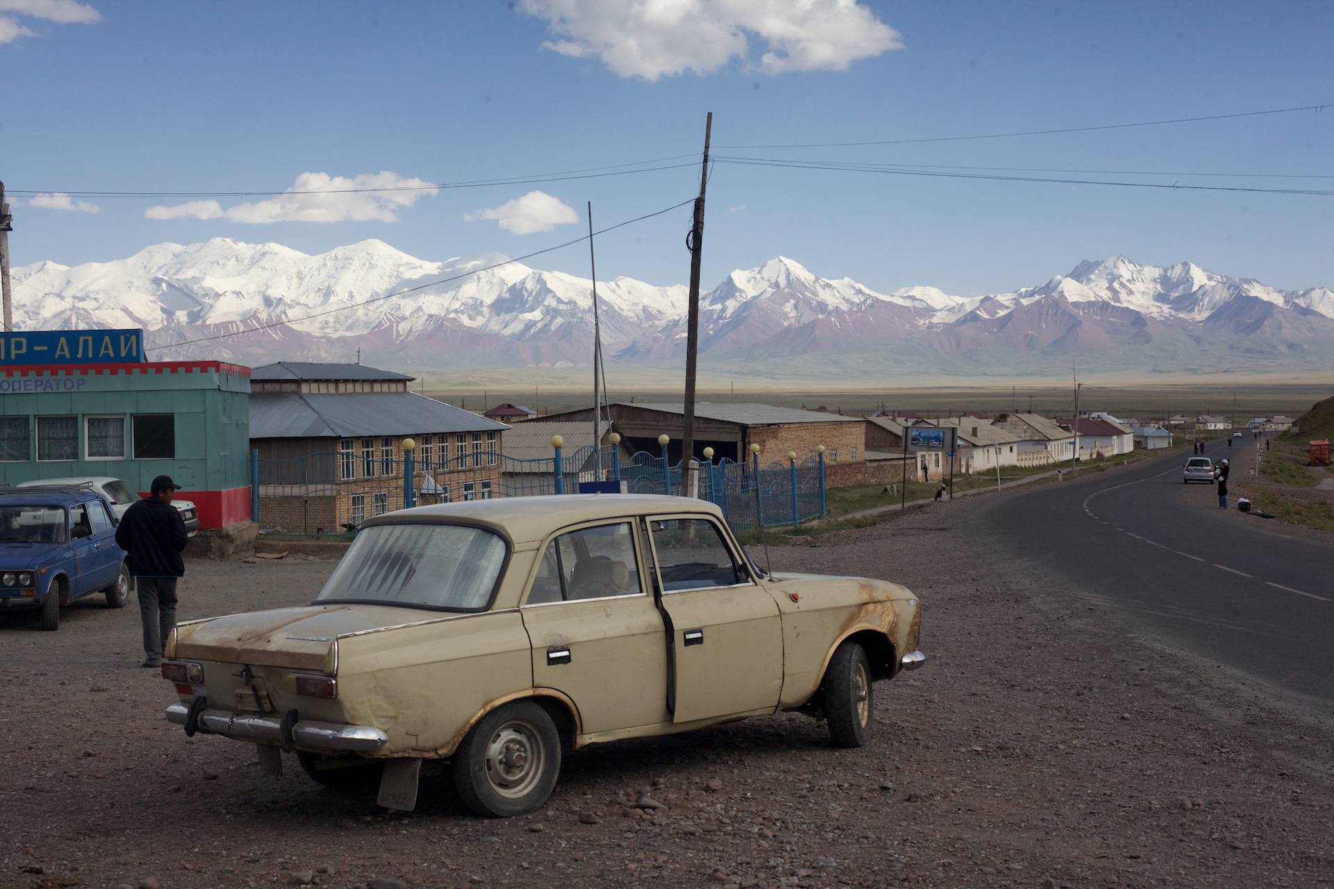 After lunch in a restaurant, we headed overland to Sary Tash, a small village in the southeast point of the country. This drive gave us our first taste of the mountainous terrain we would be traversing for the next several days. Around Osh, the countryside was heavily agricultural and dotted with small villages. Many times, we had to slow to a crawl for the small herds of cows and goats in the road. Eventually, this became less and the terrain became hilly, sparsely populated and rugged as we approached the Pamir Mountains.