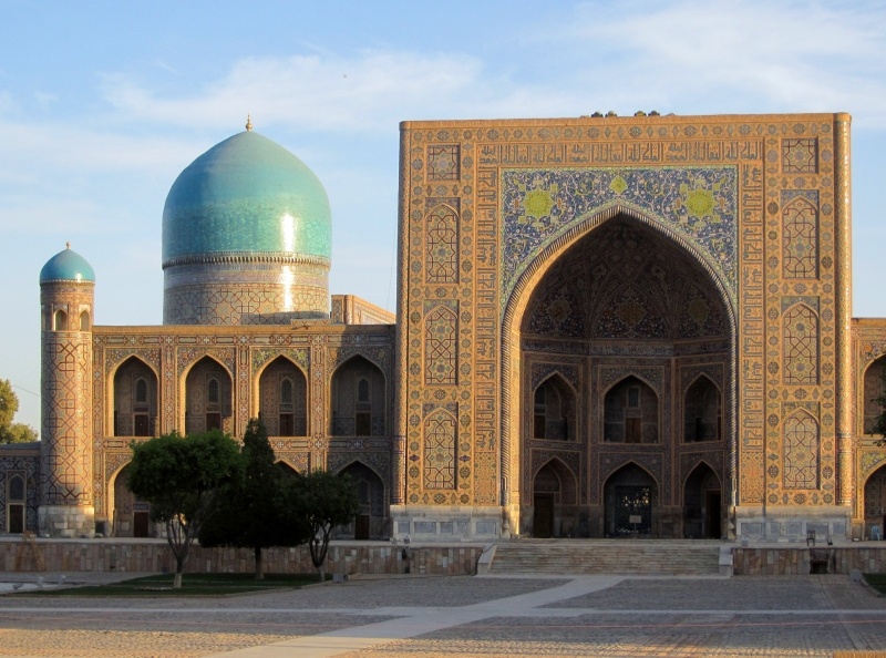 Leaving Dushanbe, we spent all day first flying to Khujand and then driving across the border to Samarkand, Uzbekistan. Crossing the border was the usual ordeal in this part of the world, with us hauling our luggage across wide expanses of no-man’s-land, multiple copies of Customs declarations to complete and the repeated examination of all our documents on both sides of the border. We spent two nights in Samarkand, a bustling city with much history and many sites to see. These included the Registan, considered to be Central Asia’s “noblest public square,” bounded by an incredible collection of Timurid architecture, and the Bibi Khanum Mosque, built by Tamerlane to be the largest mosque in the Islamic world. Architects from India and Persia, with the help of almost 100 elephants, constructed the mosque using Indian marble. We also strolled through the fascinating Shah-I-Zinda, a collection of tombs and mausoleums, and visited Gur Emir, the location of Tamerlane’s tomb.