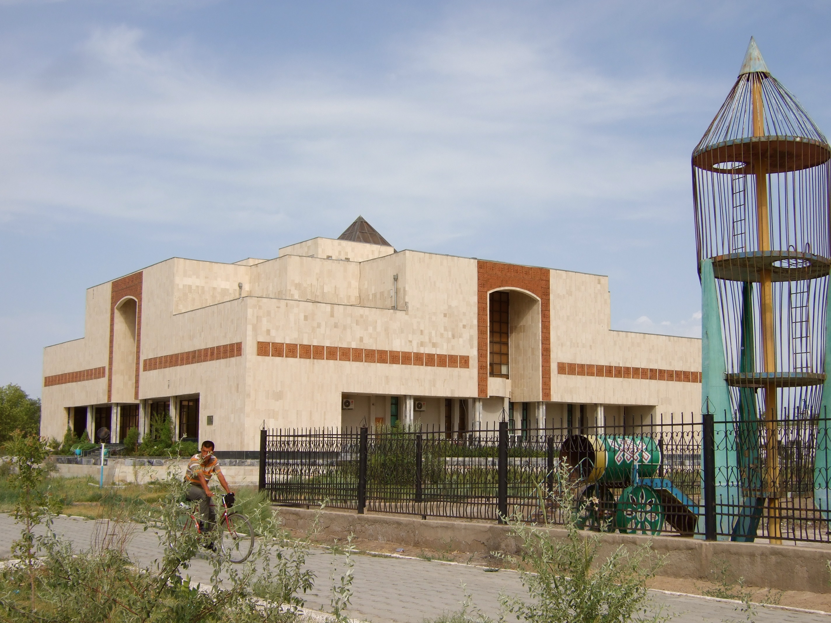 The next day we drove to Nukus, the capital of the autonomous region of Karakalpakia (or Karakalpakstan) in western Uzbekistan. The Karakalpak people are more closely related to the Kazakhs than to the Uzbeks, with a mix of Mongol bloodlines. Nukus sits at the center of an area crisscrossed by old caravan routes and dotted with ancient ruins. Its claim to fame is an amazing thing to find in such a remote area, the Savitsky Art Museum, the “Louvre of the desert.” It is famous for its huge collection of avant-garde Russian art. Igor Savitsky had amassed this collection, much of it banned by the Soviet regime and smuggled out during Stalin’s leadership. It is an astonishing world-class collection of incredible art of all mediums, well worth the ordeal of getting to Nukus to experience. However, for us it was an added bonus.